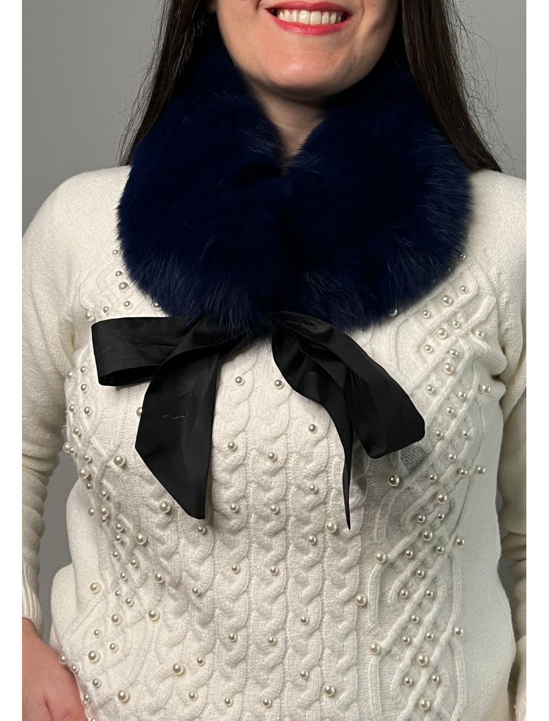 Cuello Pelo Natural Lazo FABIOLA Azul